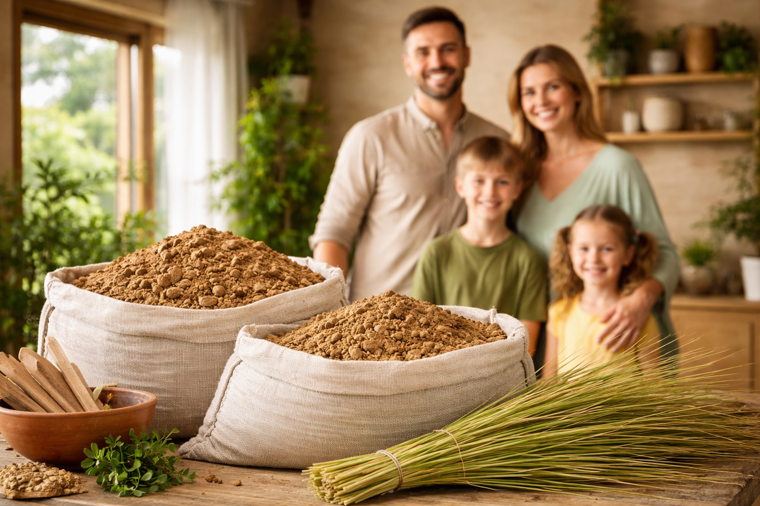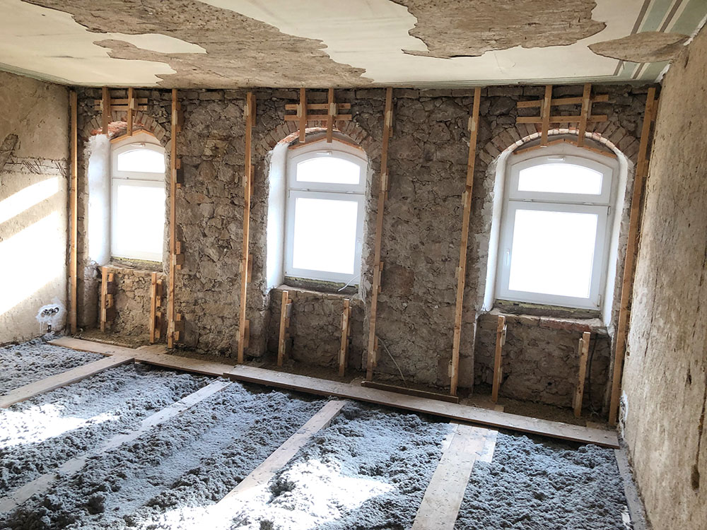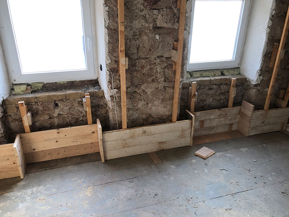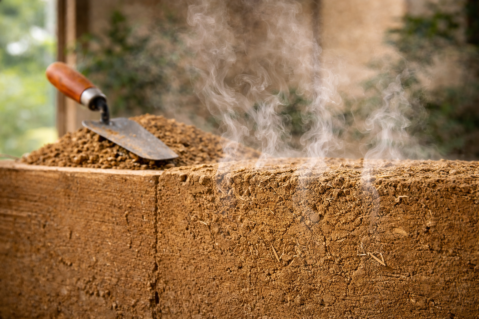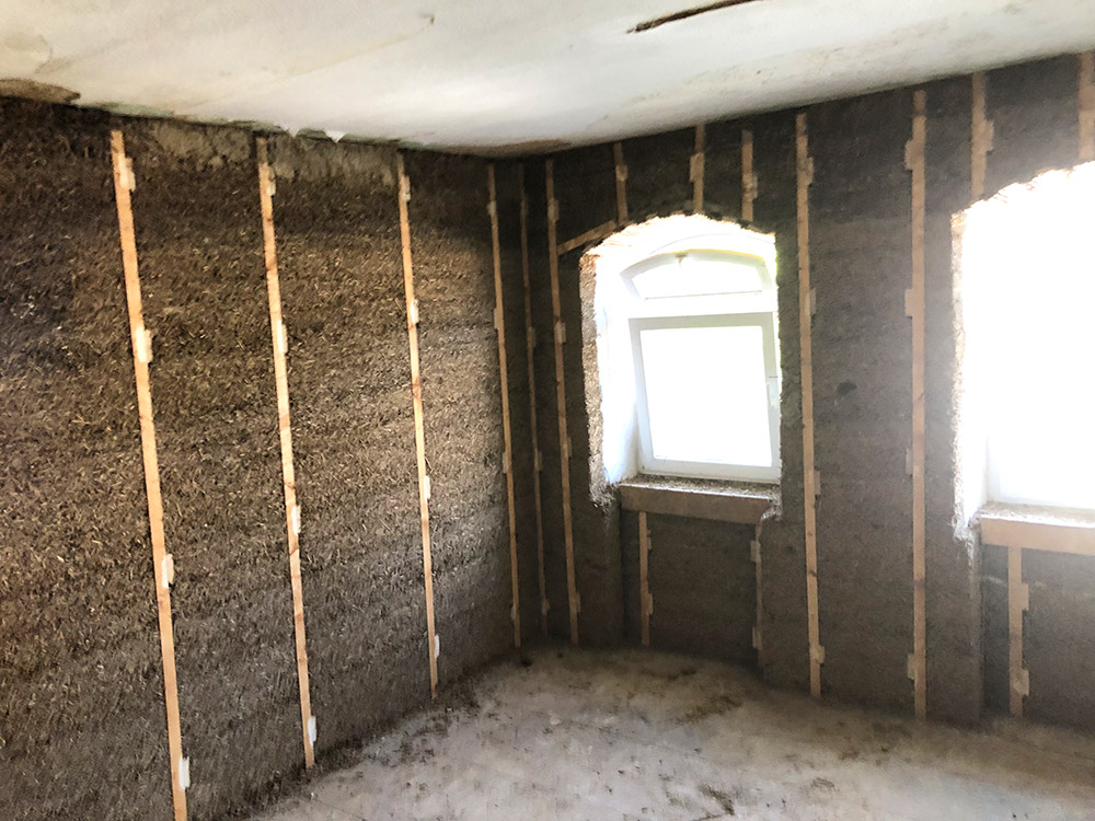 + Unsere Lehmstampfmischung aus Lehm und Miscanthusgras ist wärmespeichernd und schalldämmend
