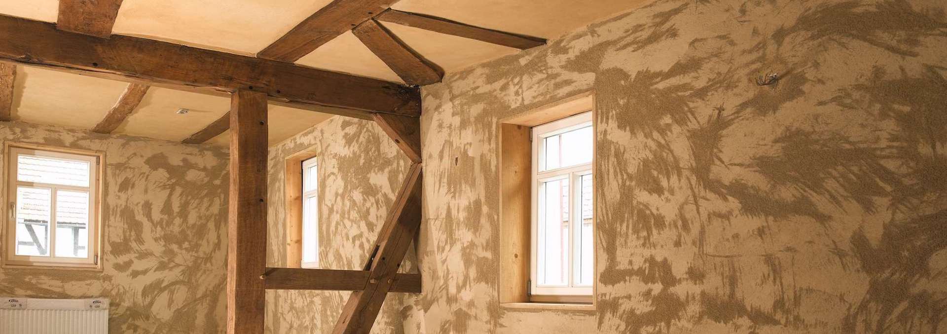 + Lehm hat einen konservierenden Effekt auf Holz und ist daher besonders gut in Verbindung mit Holz einsetzbar. Zudem wirkt Lehm schallschluckend und lässt Räume wärmer wirken.