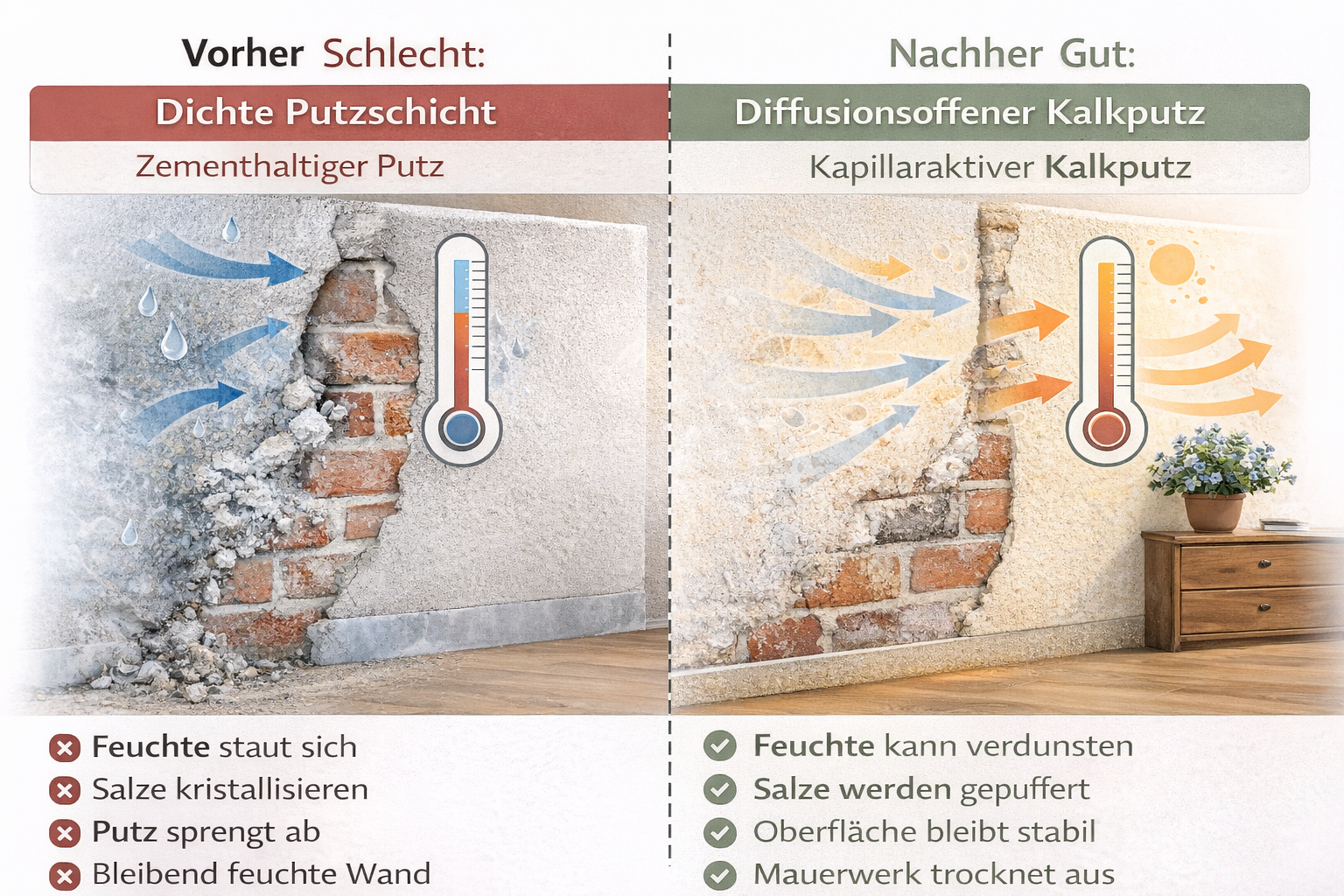 Kalk z. B. wirkt zusätzlich alkalisch – das hemmt Schimmelwachstum auf natürliche Weise.